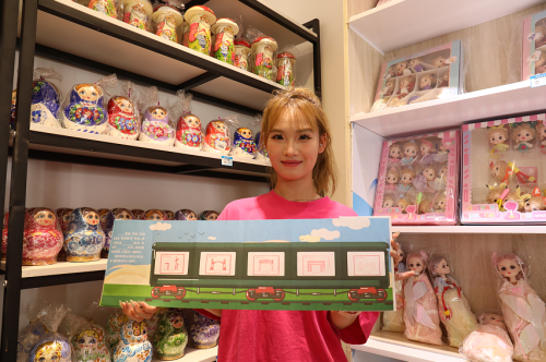 在俄式風情拉滿的套娃主題郵局,采訪組一行看到了套娃形狀的郵筒、手繪套娃、套娃明信片、郵折、筆記本、冰箱貼等產(chǎn)品,這些產(chǎn)品吸引了很多小朋友的眼球。來自山東的中學生張同學對一款做工精美的套娃愛不釋手:“感覺來到這里就像到了俄羅斯,這里的套娃都太精美了,每一款都想要!”