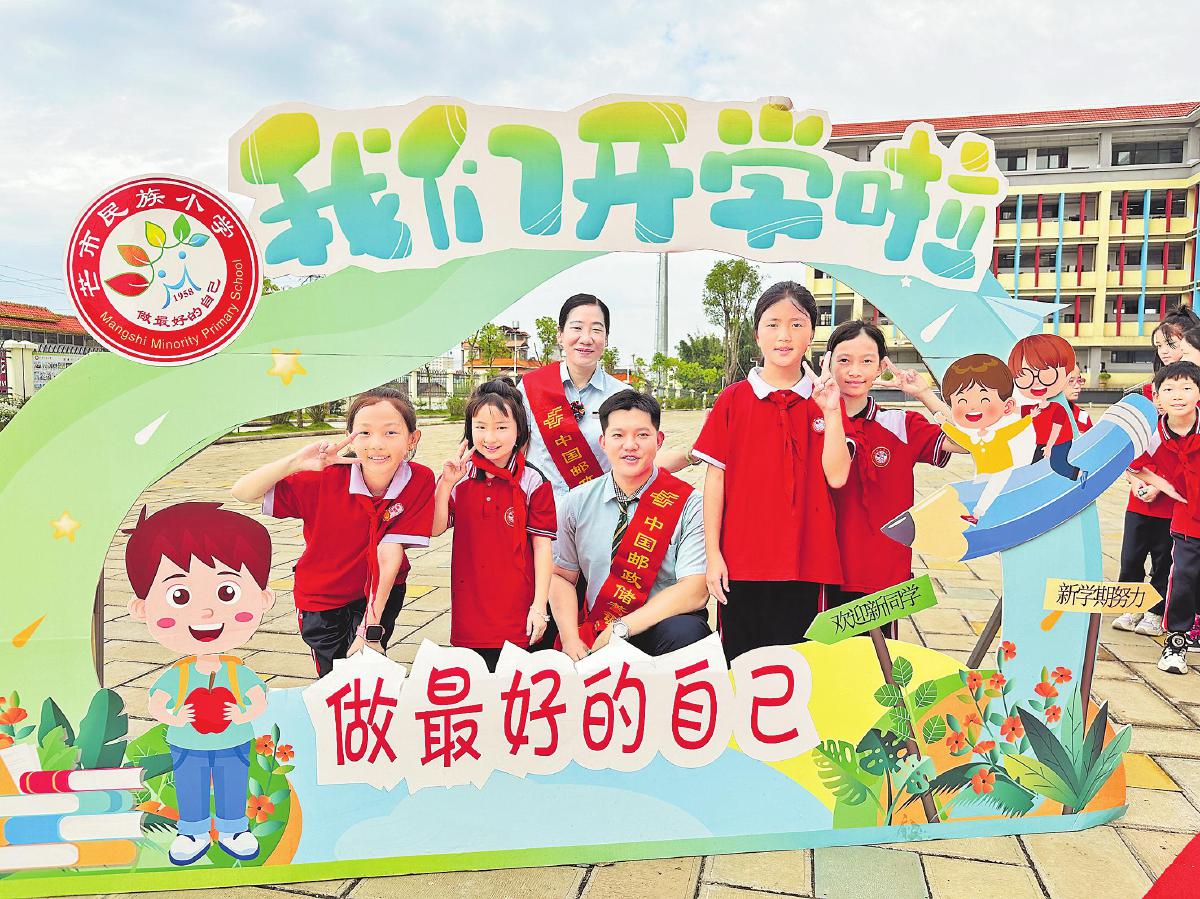 9月1日,是各中小學校開學的日子。云南省德宏傣族景頗族自治州城區郵政分公司組織人員到各學校開展志愿服務,助力新學年開學季。