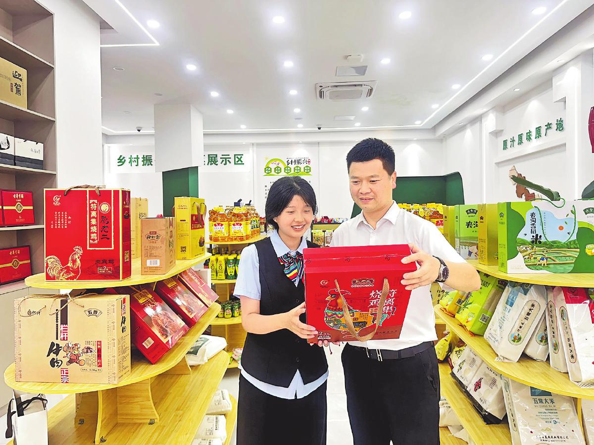 宿州郵政鄉(xiāng)村振興農(nóng)特產(chǎn)品展銷館吸引市民駐足選購農(nóng)產(chǎn)品。□毛圣茹 攝