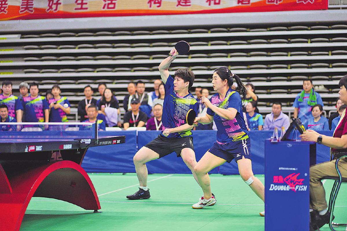 混雙組合選手在比賽中積極搶攻。