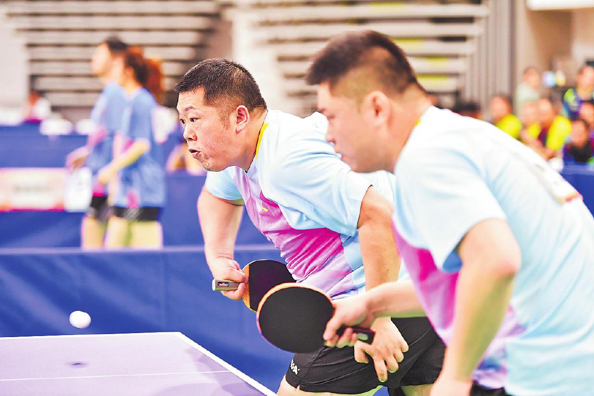 本次比賽觀賞性、競技性十足。賽場上,有面對臺風肆虐依然堅持訓練迎戰比賽的隊伍,有連續奮戰四屆比賽即將退休的老將,有從國家隊、省隊退役帶傷上陣的斗士,有并肩作戰的夫妻檔,有接力傳承的老中青組合,匯聚起這場乒乓盛宴的強大陣容。來自江西郵政代表隊的劉羿和吳春顏是夫妻檔混雙組合,兩人在大學因乒乓球結緣,后來又成為工作上的同事,這次在賽場上更是展現出了伴侶間的默契。“我們非常了解彼此,很多時候心領神會,能夠取長補短。”劉羿如是說。曾代表中國郵政出征“2020中國職工乒乓球聯賽”并斬獲“四金二銀一銅”戰績的選手們幾乎全部來到了賽場,其中男單青年甲組冠軍蔡偉表示:“上次是對外比拼,這次是內部競技,友誼第一。”