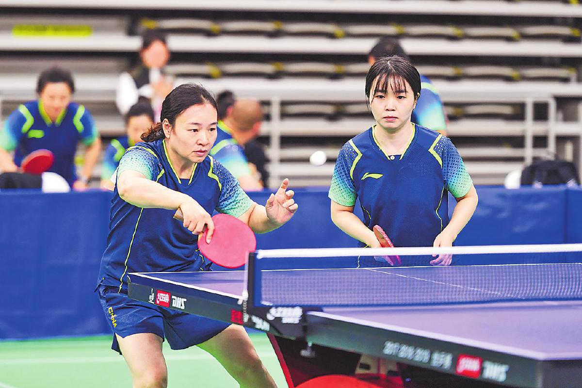 比賽中,男雙組合選手嚴陣以待。