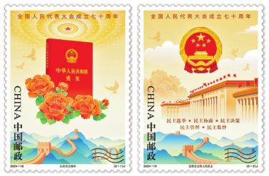 9月15日,《全國人民代表大會成立七十周年》紀念郵票將發(fā)行。