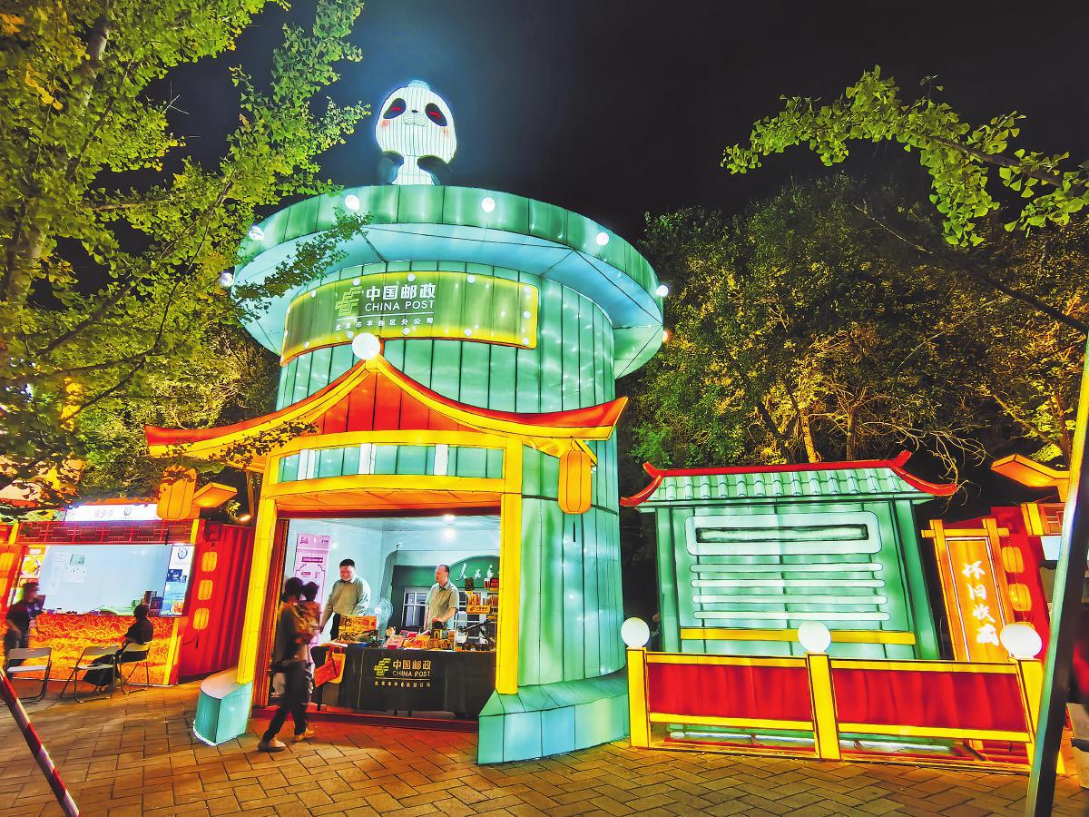 9月14日,北京首屆“京彩燈會”——園博園中秋國慶彩燈游園會盛大開幕。此次燈會規模宏大,是四川自貢燈會在北京的再度精彩呈現,為廣大游客帶來了一場融合傳統文化與現代創意的視覺盛宴。燈會上,一組藍綠色調的郵筒花燈格外引人注目。這組花燈具有濃厚的中式建筑風格,展現了郵筒的傳統形象,特別是上方的熊貓設計,憨態可掬。為更好地服務“京彩燈會”,北京市豐臺區郵政分公司專門設計了園博園燈會紀念章,還推出了一系列融合郵政傳統文化與現代元素的文創產品,深受游客的青睞。
