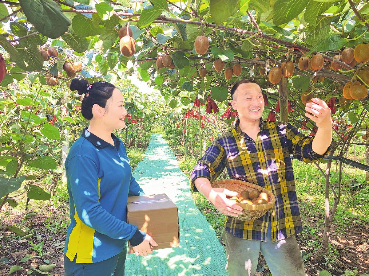 郵政上門收寄獼猴桃,農(nóng)戶樂開懷。□劉力揚 攝