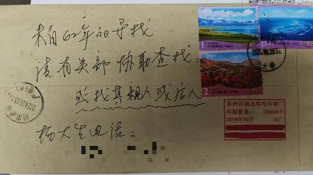 信封背面留的字是:來自62年的尋找,請(qǐng)有關(guān)部門協(xié)助查找,或找其親人、后人。