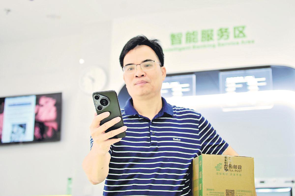 支局周圍的商戶常常會來自助寄件。在附近做了十多年電子產(chǎn)品生意的吳先禮是這個網(wǎng)點的???。說起網(wǎng)點的變化,他很有感觸:“以前來這個營業(yè)點寄東西,人多的時候要等不少時間;現(xiàn)在我提前在手機上下單,來了直接寄,像是自己家里有郵局,非常方便!”