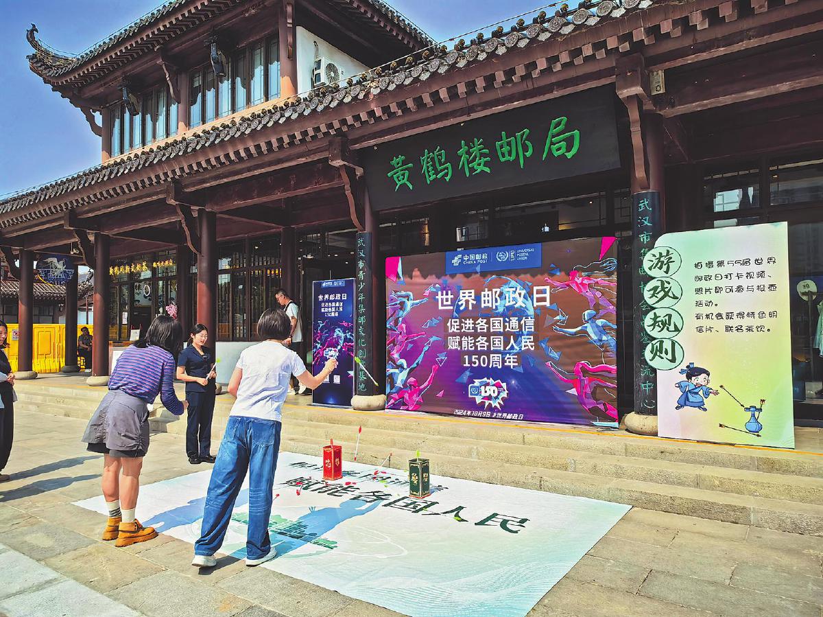湖北省武漢市郵政分公司在黃鶴樓郵局、東湖高新政務(wù)中心以及全市各個(gè)郵政網(wǎng)點(diǎn)舉辦了形式多樣的世界郵政日主題宣傳活動。位于黃鶴樓景區(qū)東門的黃鶴樓郵局在世界郵政日當(dāng)天開展了集戳打卡、趣味投壺、書畫展示等豐富多彩的活動,吸引了不少市民和游客參與?! 跣し肌£惥辍z