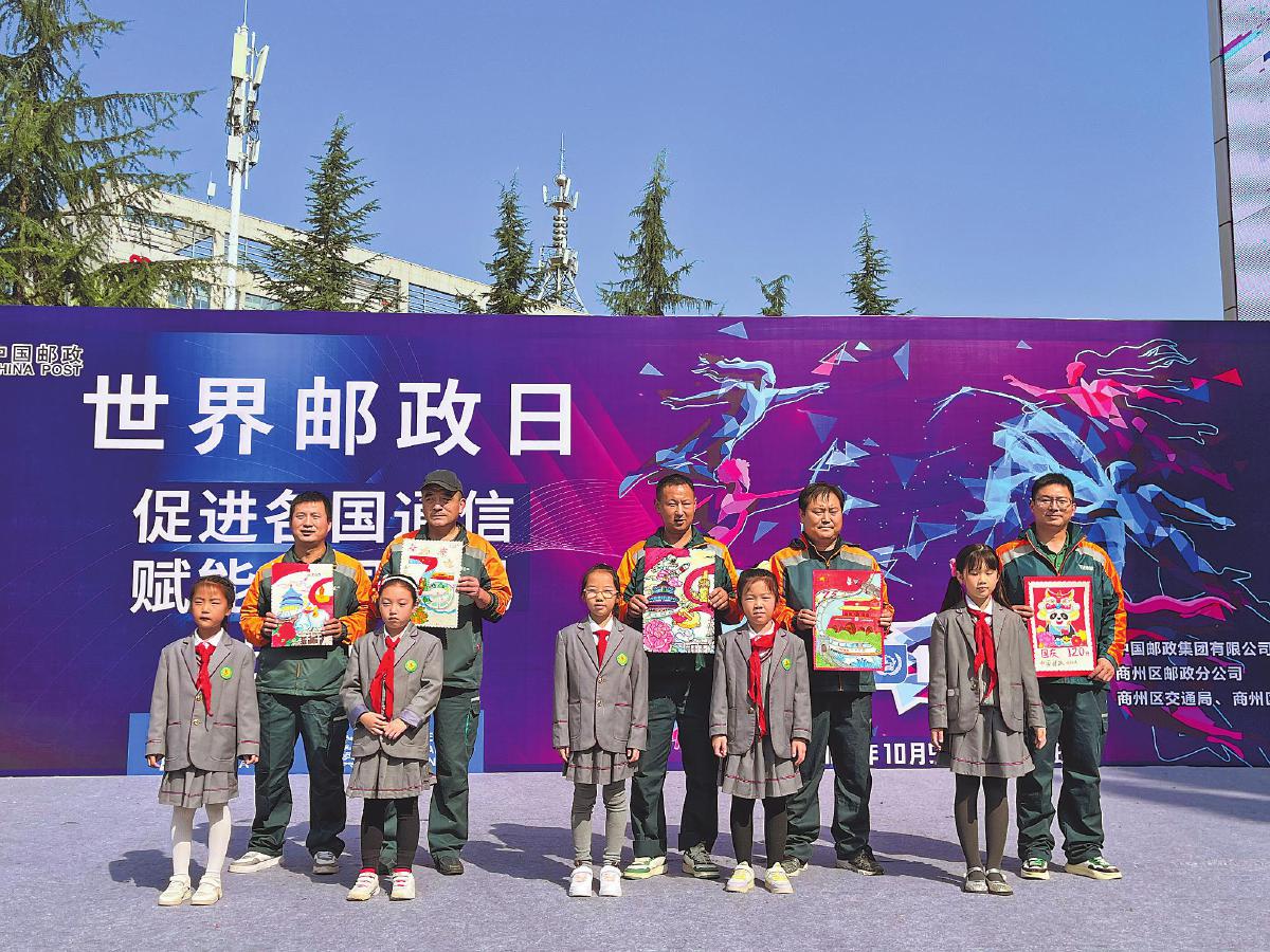 陜西省商洛市郵政分公司舉辦世界郵政日宣傳暨“童心同行 郵政相伴為美好生活加‘郵’”活動,來自商州區(qū)第六小學(xué)的5位小朋友現(xiàn)場為郵政快遞員送上了精美的手繪作品?! 鯊垶t 攝