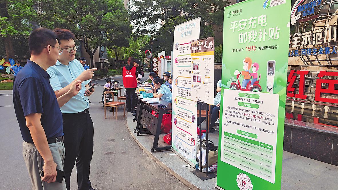 夏深秋淺,走進江蘇省宿遷市鳳凰美地小區,單元樓下嶄新的電動自行車停車棚非常醒目,棚內設有充電樁與多處充電插孔,居民的電動自行車整齊排成一列充電。“在微信上綁定郵政儲蓄卡,只需支付1分錢,就可以給電動車充滿電了,既方便又實惠。”享受到郵政便捷又優惠的支付服務,小區居民張大姐開心不已。