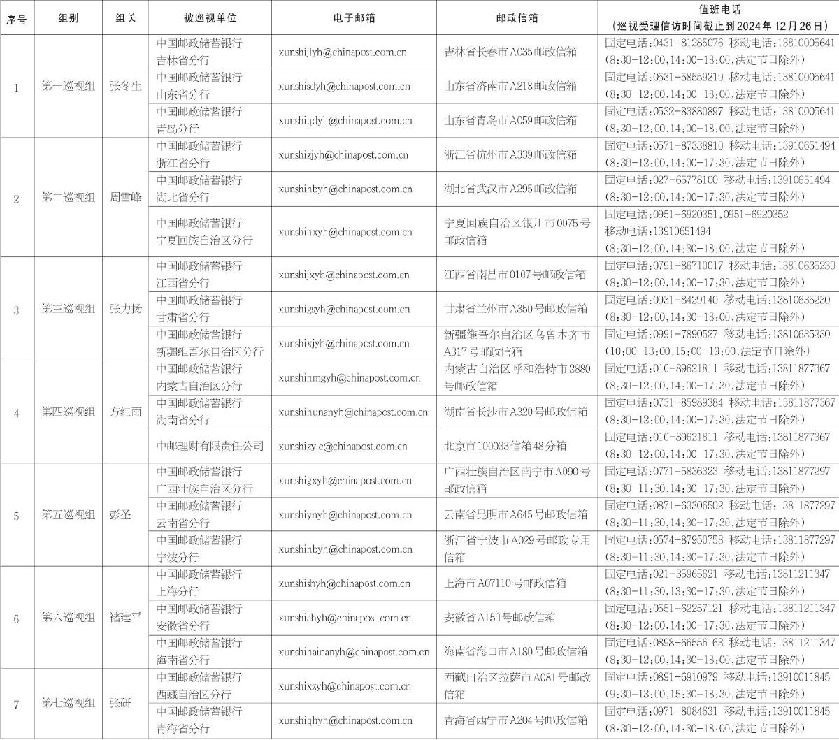 中國郵政集團(tuán)有限公司黨組2024年第二批巡視進(jìn)駐信息一覽表