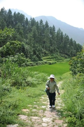 這是在江西省鉛山縣陳坊鄉(xiāng),羅細(xì)英在步行送郵件的路上(2011年7月20日攝)。新華社記者 周密 攝