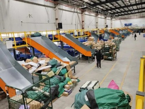 隨著一輛輛卡車到站停靠在垛口處,來自各地的郵件通過傳送帶進(jìn)入省際進(jìn)口郵件處理中心,粗分、拆包、小件掃描、裝籠,工人們圍繞著各個(gè)分揀線開始緊張有序的郵件分揀作業(yè)。