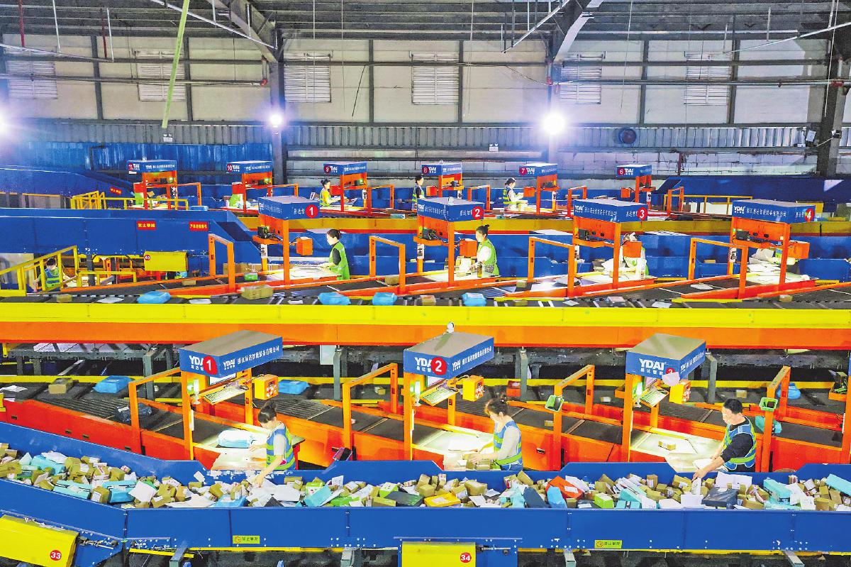 郵件分撥中心夜間作業(yè)忙碌而有序
