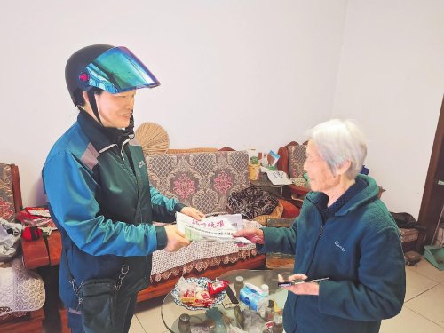 劉獻(xiàn)梅將報(bào)紙送到孤寡老人家中。