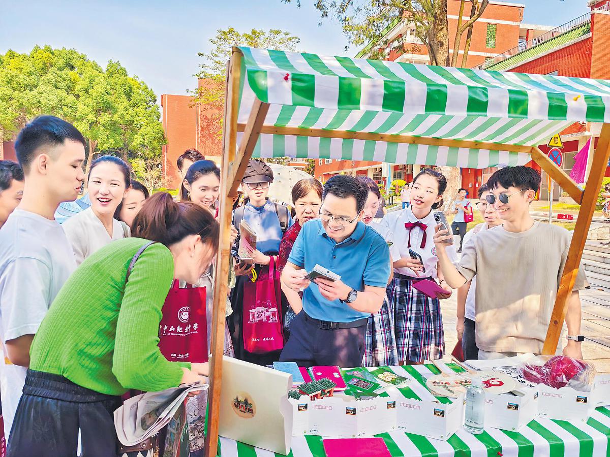 中山紀(jì)念中學(xué)的師生和校友選購(gòu)校慶集郵文創(chuàng)產(chǎn)品。