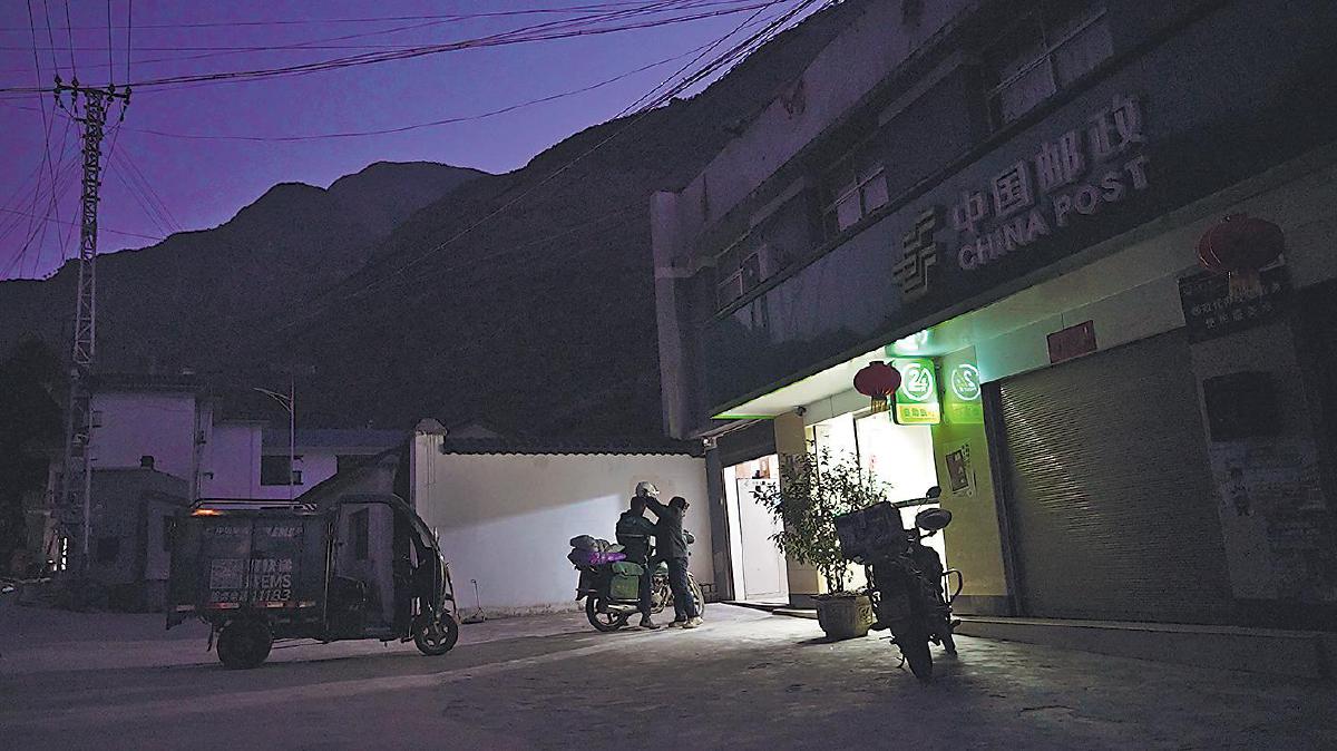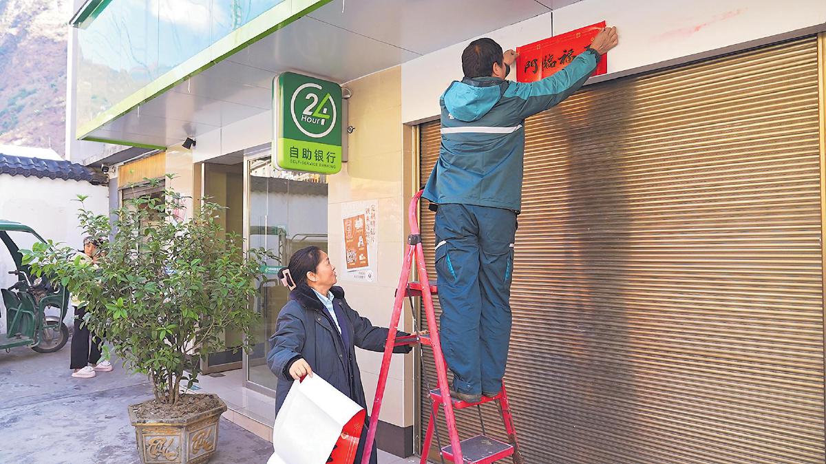 臨近春節(jié),桑南才和妻子在郵政所掛上燈籠、貼上春聯(lián),期望新的一年平安幸福,為鄉(xiāng)親們更好地服務(wù)?! 鯊垥x通 攝