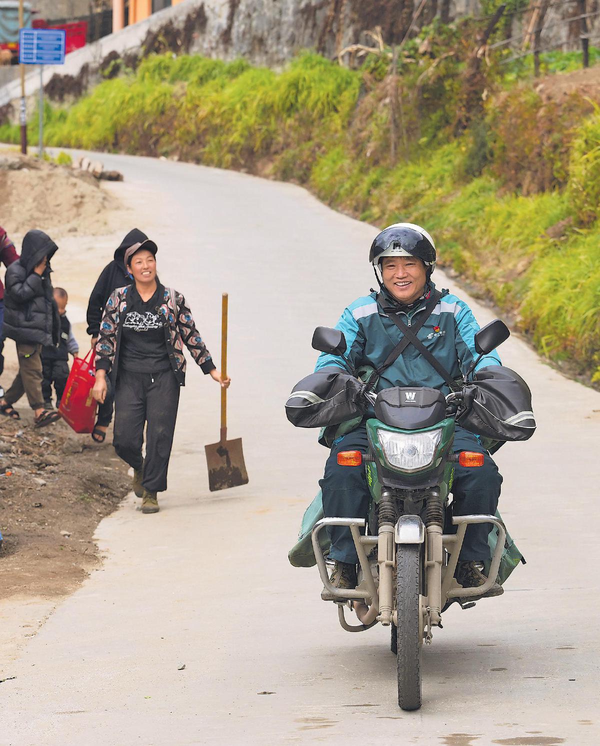 每一次郵件妥投,鄉(xiāng)親們和桑南才的臉上都會洋溢著幸福的笑容?!跣氯A社記者 李賀 攝