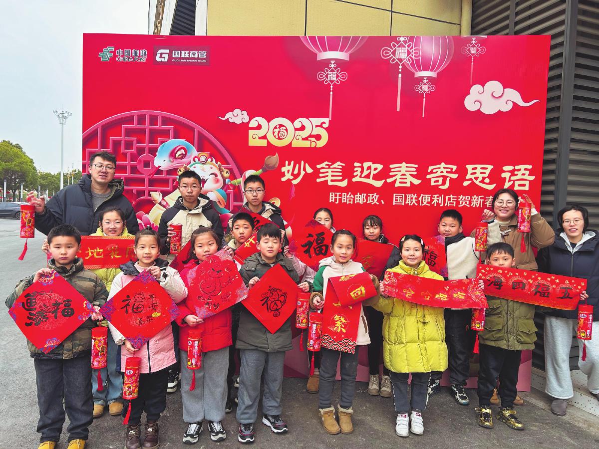 江蘇 盱眙縣郵政分公司邀約全縣中小學學生代表參加“妙筆迎春寄思語”活動。同學們一筆一劃地書寫出對新年的美好祝愿。□陳潔 攝影報道