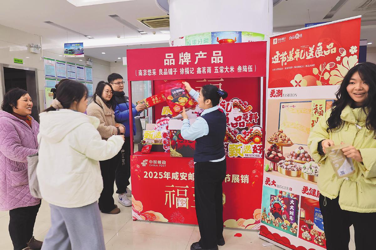 湖北咸寧郵政在網點開設年貨展銷專區,吸引客戶在線下單。□陳快 攝