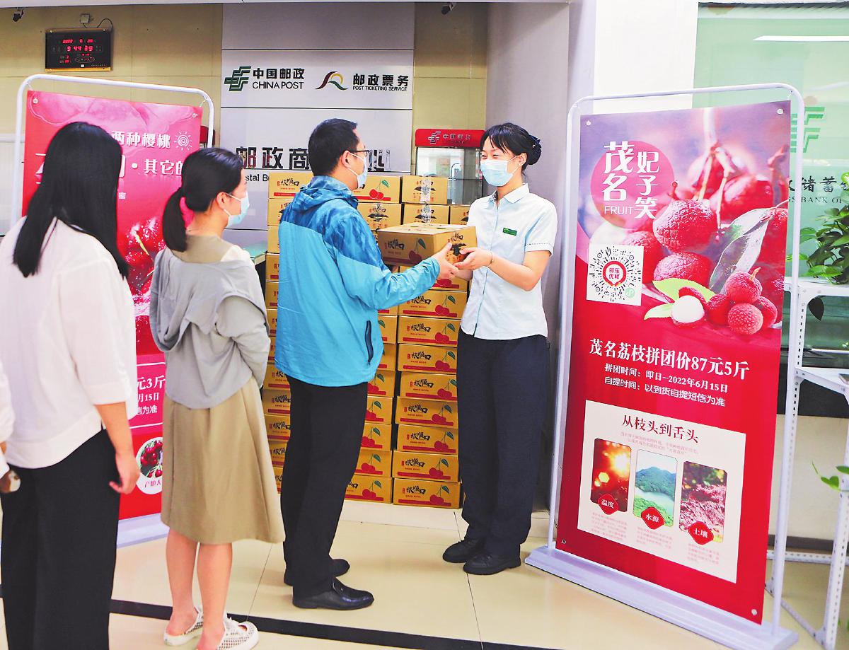 江蘇郵政與廣東郵政茂名荔枝基地合作,開展網點拼團活動。