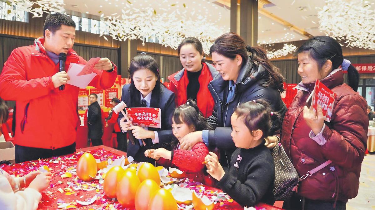 2月10日—11日,湖北省荊門市郵政分公司聯合中郵保險組織“情聚元宵 郵享財富”高客聯歡會。活動現場,猜燈謎、健康體檢以及“幸福投遞”“元氣夾倍”等游戲吸引了眾多高客熱情參與。活動中還巧妙穿插財富管理業務講解,滿足客戶在財富增值等方面的多元化需求。活動將傳統節日與金融服務深度融合,受到客戶一致好評。□徐敏 攝影報道
