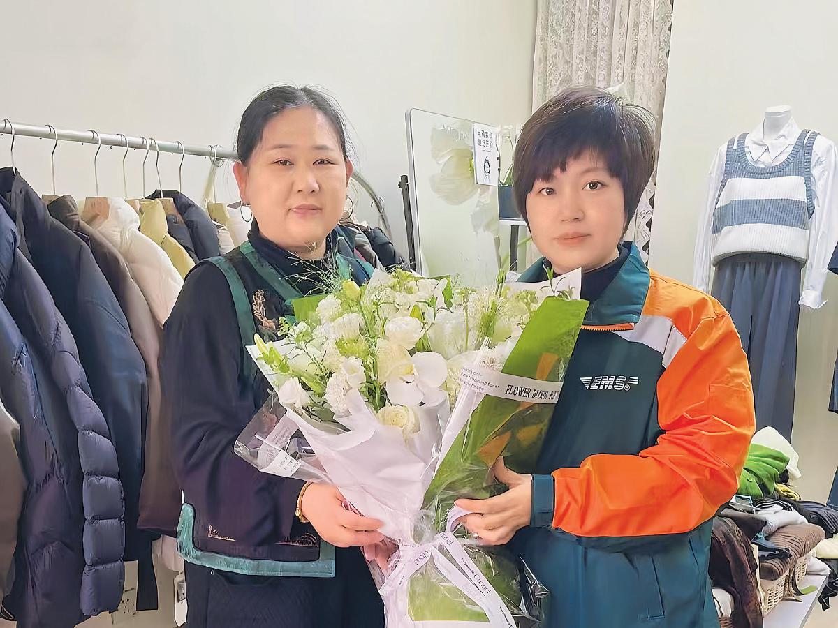 圖為攬投員為客戶送上充滿愛意的鮮花。