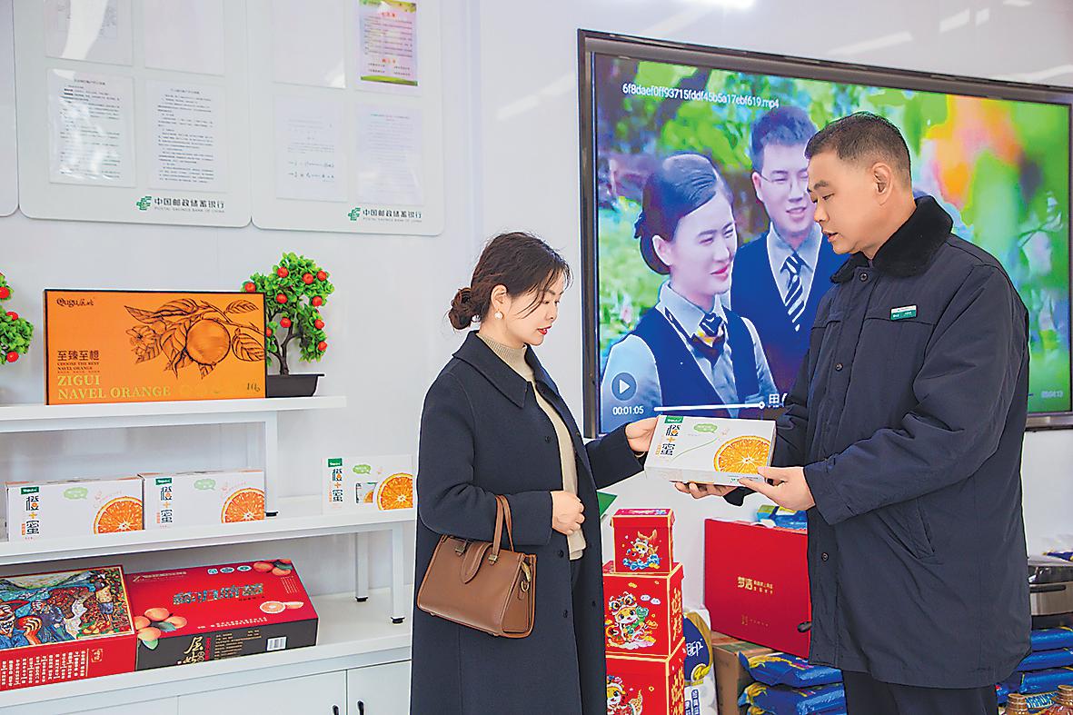秭歸縣支行工作人員向客戶介紹臍橙產(chǎn)品。