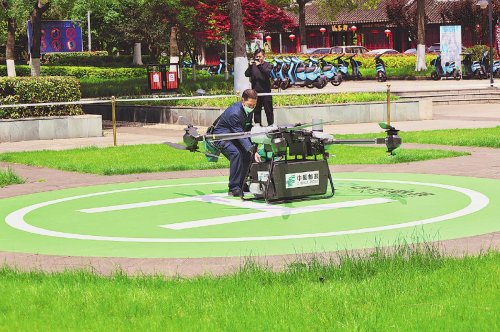 蘇州市分公司成功運(yùn)行首個(gè)無(wú)人機(jī)運(yùn)郵試點(diǎn)項(xiàng)目。□周敏潔供圖