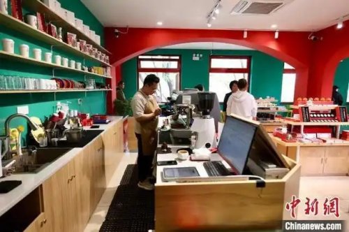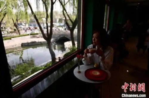 主題郵局推出特色咖啡及甜點(diǎn),臨窗卡座受到游客歡迎。設(shè)計(jì)師巧妙運(yùn)用“框景”手法,寬闊的玻璃窗仿佛取景器,讓游客通過(guò)新視角觀賞萬(wàn)寧橋的碧波垂柳、火德真君廟的飛閣重檐。