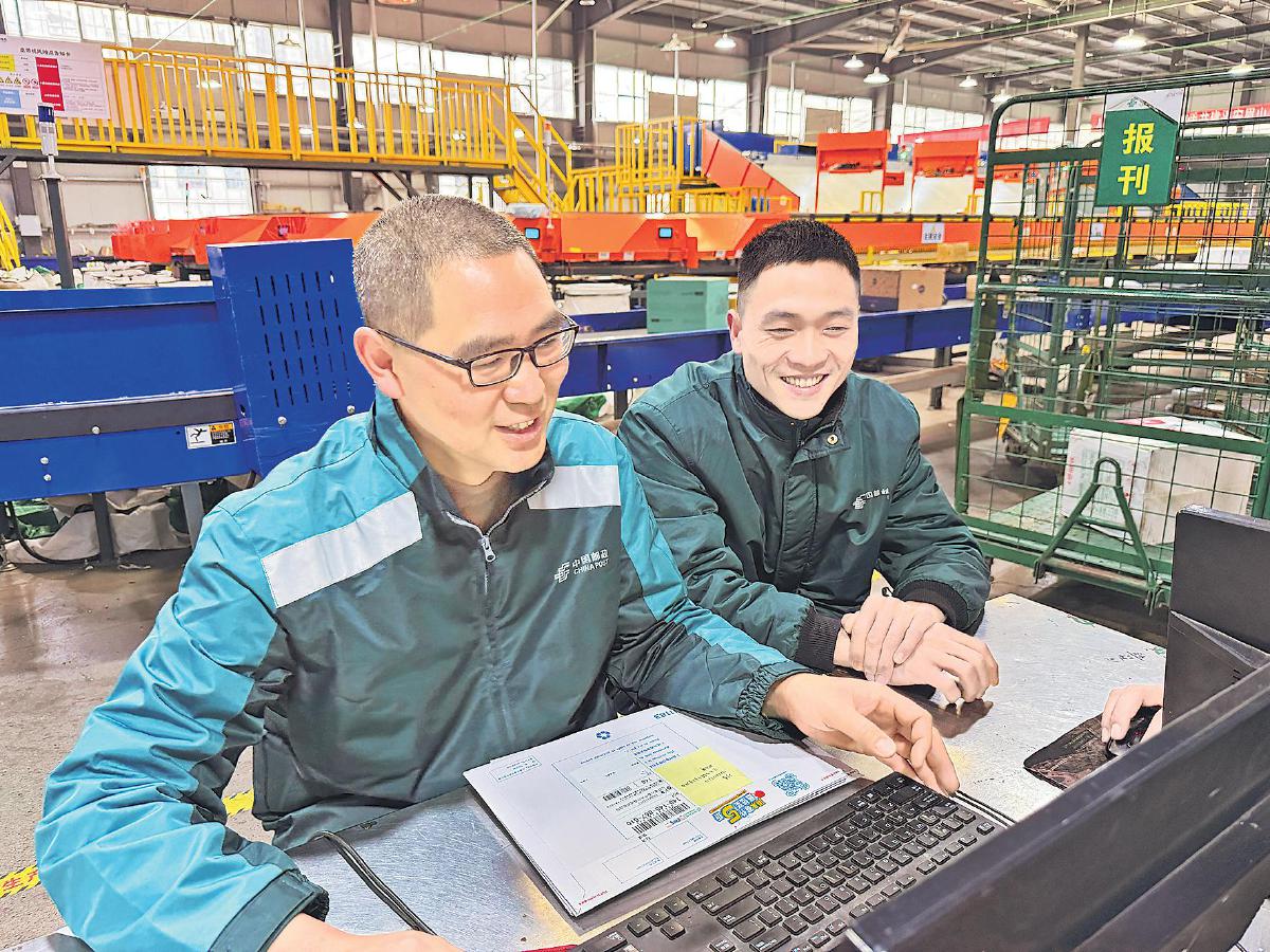 為驗(yàn)證想法的可行性,邱文波利用休息時(shí)間和同事一起調(diào)整傳送帶的分發(fā)程序設(shè)置,并在傳送帶兩側(cè)設(shè)置分揀區(qū)域,一邊是城區(qū)郵件分揀區(qū),另一邊是鄉(xiāng)鎮(zhèn)郵件的暫存區(qū)。兩周后,原本需要5名分揀員協(xié)作的工作,3人即可完成,效率提升近40%。“以前分揀城區(qū)、鄉(xiāng)鎮(zhèn)的包裹需要很長時(shí)間,現(xiàn)在重新調(diào)整了分揀流程,不僅分揀效率提高了,后續(xù)鄉(xiāng)郵封發(fā)組的工作也輕松了?!必?fù)責(zé)封發(fā)的何靜波感慨道。