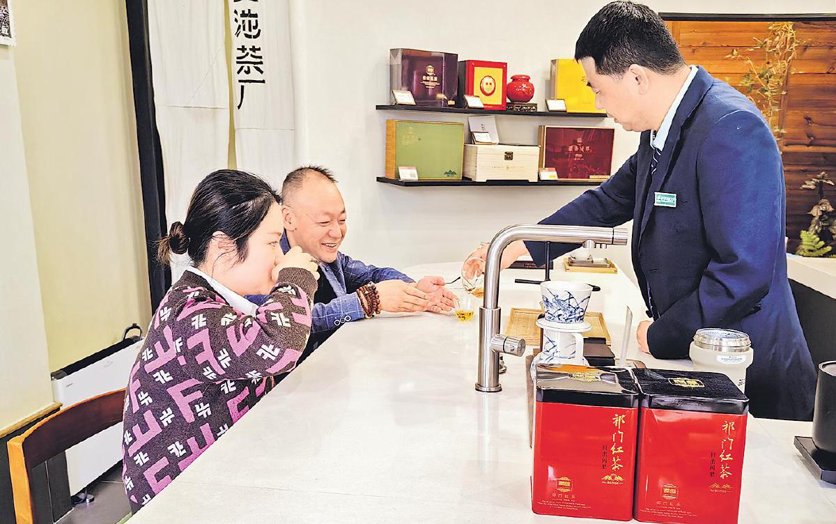 游客在祁紅主題郵局品茶。