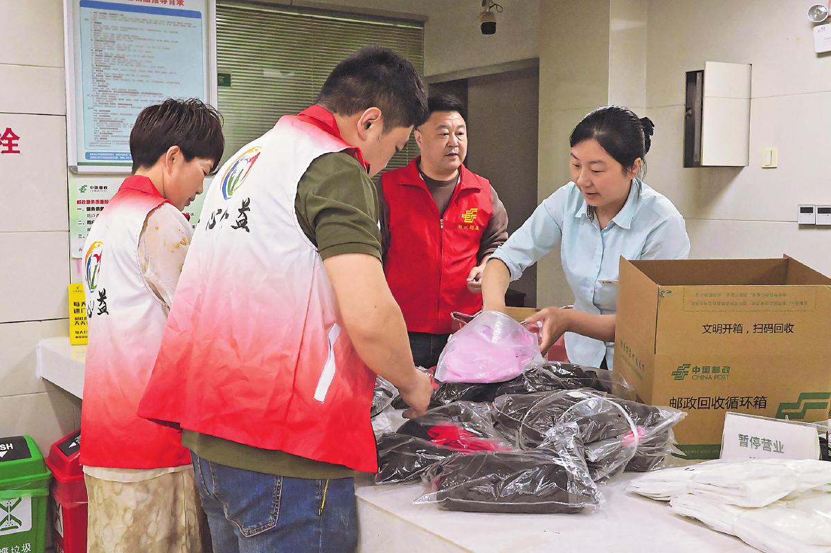 4月23日上午,在浙江省湖州市吳興區(qū)郵政分公司紅旗路營業(yè)網(wǎng)點(diǎn),郵政工作人員將湖州一心公益服務(wù)中心送來的350余件愛心衣物裝入統(tǒng)一規(guī)格的郵政紙箱中,寄往四川汶川。從攬收、打包到發(fā)運(yùn),郵政全環(huán)節(jié)“護(hù)航”這批公益包裹,為汶川受助學(xué)生送去湖州市民的一份“牽掛”。