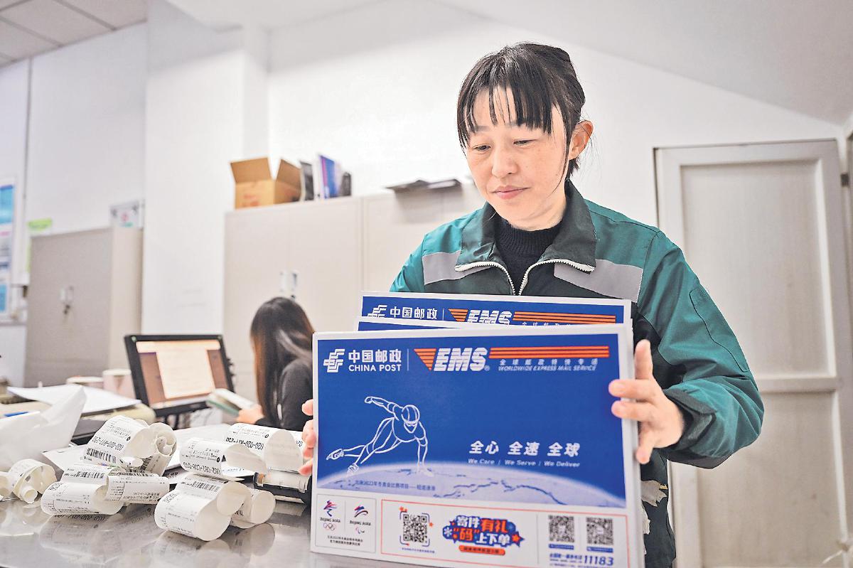 劉婷整理當(dāng)天需要投遞的郵件。