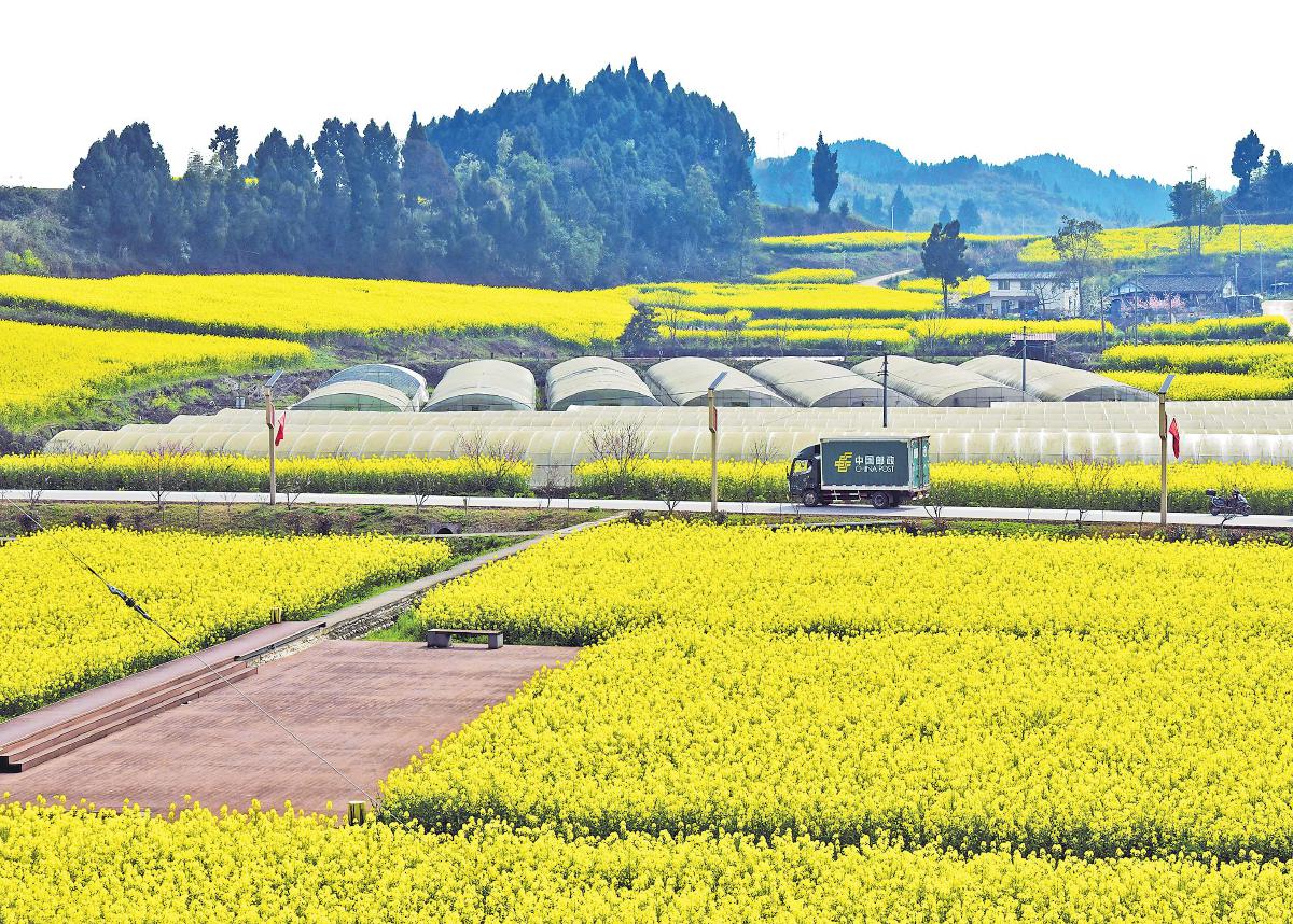 郵車暢行于沃野阡陌,承載著鄉(xiāng)村振興的希望。 □曾祥文 攝