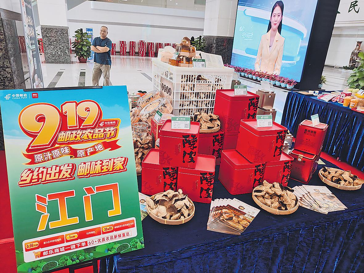 江門(mén)郵政在“919郵政農(nóng)品節(jié)”期間開(kāi)設(shè)新會(huì)陳皮展銷專區(qū)。 □黃雪梅 攝
