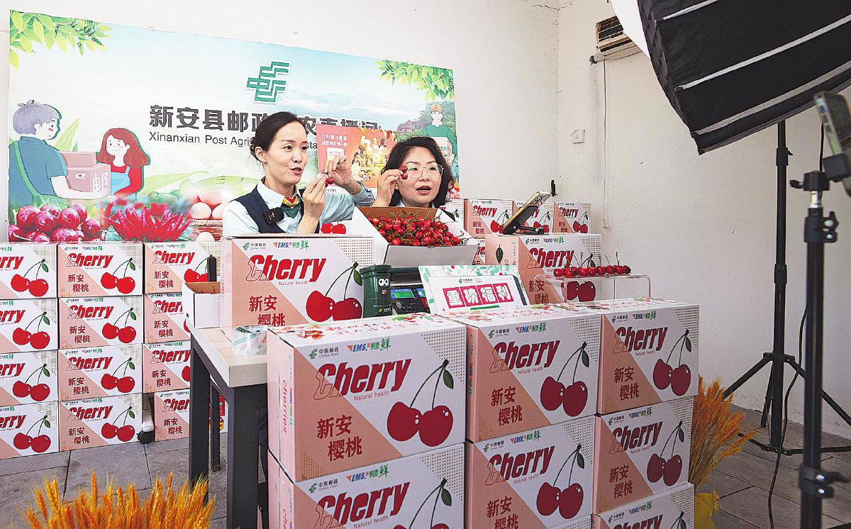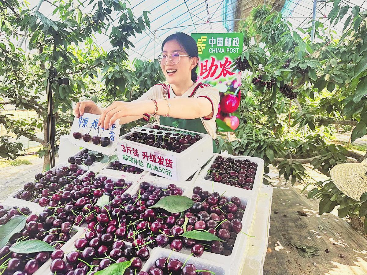 洛陽(yáng)郵政直播團(tuán)隊(duì)助銷(xiāo)新鮮櫻桃。