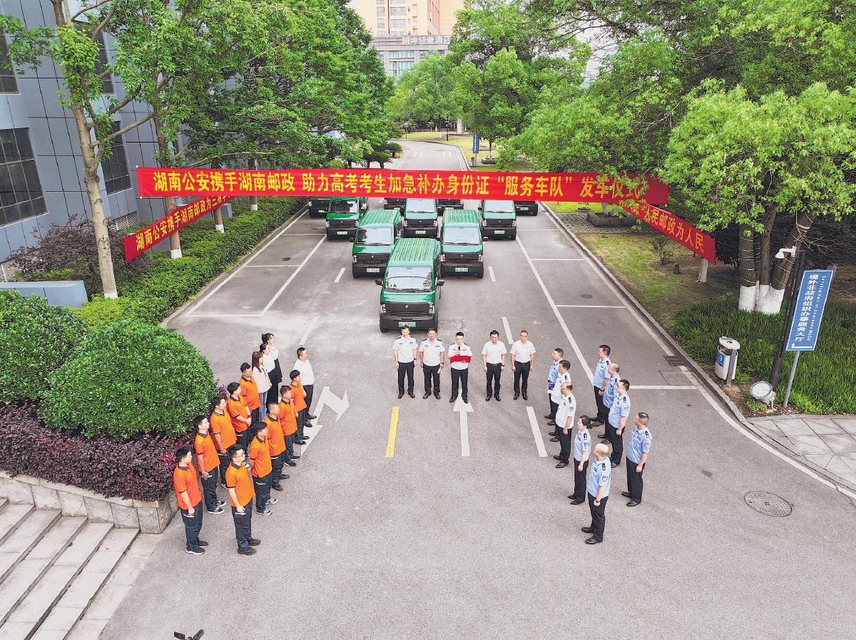 6月5日上午,湖南省公安廳、湖南省郵政分公司在省公民信息管理局?jǐn)y手舉行高考考生身份證加急補辦“服務(wù)車隊”發(fā)車儀式。這是湖南警郵連續(xù)第七年為中高考考生開通身份證補辦加急“綠色通道”。