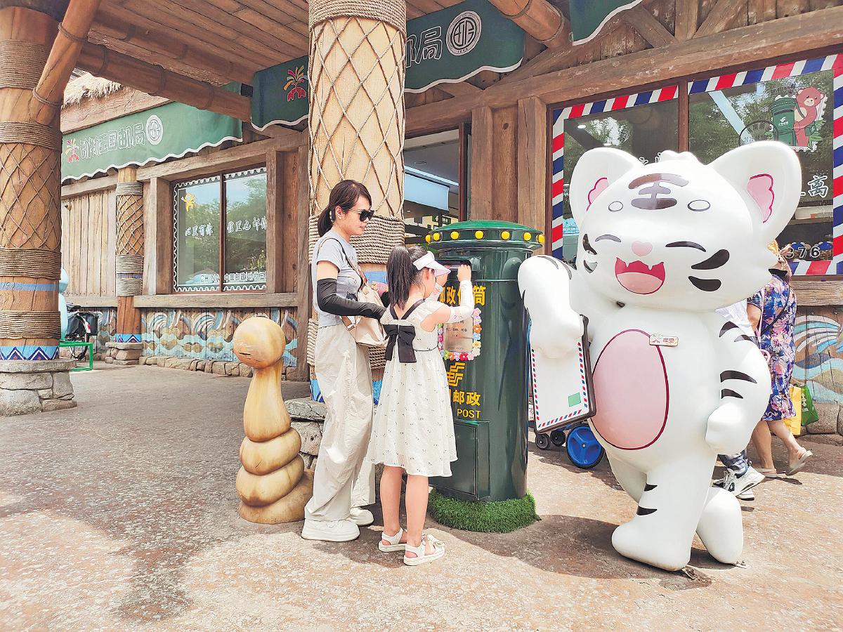 可愛的動物雕塑陪伴著小朋友們在郵局打卡。 □李冬 攝