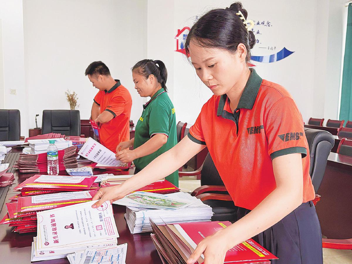 6月12日中午,江西省宜春幼兒師范高等專科學(xué)校會(huì)議室里,宜春市袁州區(qū)郵政分公司工作人員一刻也不歇息,核對(duì)組緊盯考生信息與面單,封裝組規(guī)范折疊錄取通知書、嵌入入學(xué)資料,動(dòng)作迅速、精準(zhǔn)有序,僅3小時(shí)就將1019份單獨(dú)招生錄取通知書一一裝進(jìn)“夢(mèng)想的包裹”。下午3點(diǎn),所有郵件完成封裝發(fā)運(yùn)。