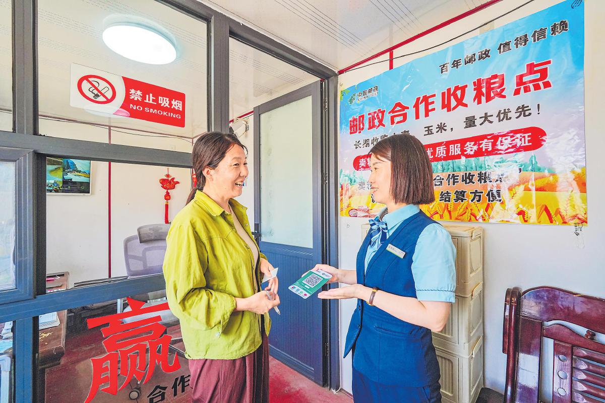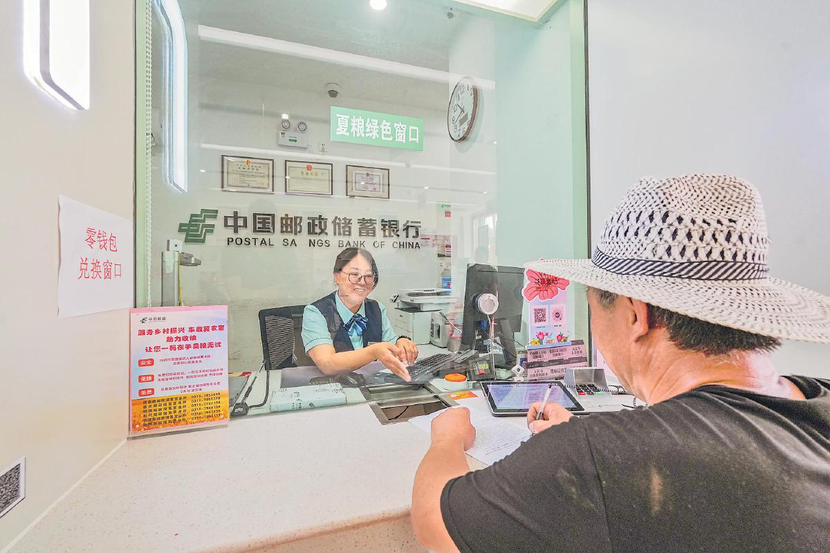 郵政網(wǎng)點為收糧點負責人、種植戶、收割機手等開設(shè)夏糧綠色窗口。