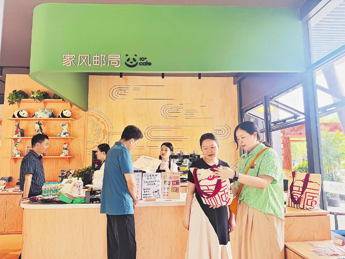 游客在熊貓家風(fēng)郵局選購集郵文創(chuàng)產(chǎn)品。