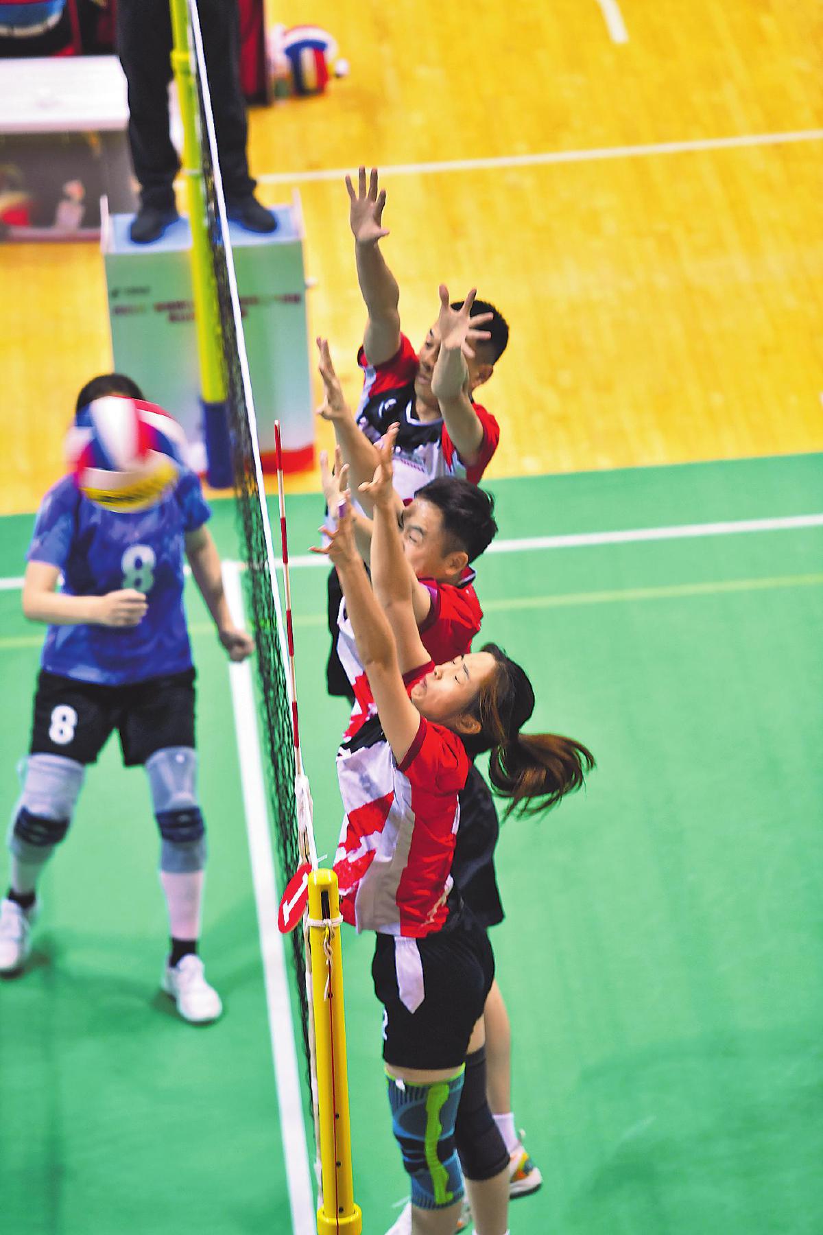 雖然扣球來(lái)勢(shì)洶洶,但絕不讓它輕易穿透我們的防守。