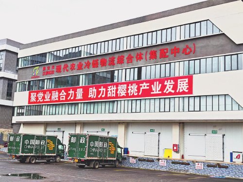 雅安郵政冷鏈物流為漢源甜櫻桃“保鮮”寄遞全程護(hù)航。□趙妍瑞 攝