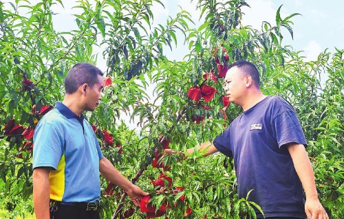 郵政工作人員走訪果農(nóng),了解銷售寄遞需求。 □錢躍輝 攝