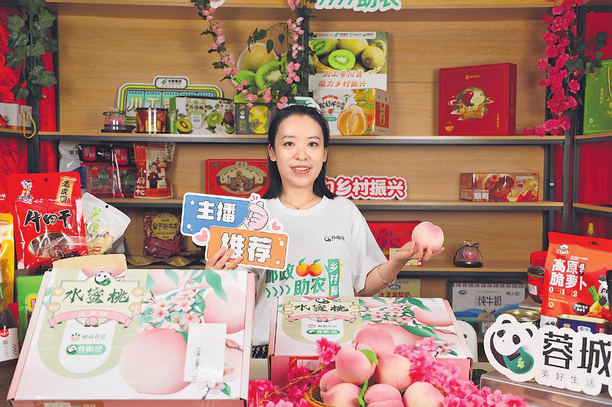 “龍泉水蜜桃汁水豐沛、口感香甜,每一口都像在品嘗夏天!”6月20日,在龍泉驛區(qū)農(nóng)業(yè)農(nóng)村局與山泉鎮(zhèn)政府聯(lián)合主辦的特色農(nóng)產(chǎn)品展銷活動中,郵政員工布展搭景,通過直播推銷龍泉水蜜桃,引來果農(nóng)的圍觀,同時也收獲了大量網(wǎng)友的點(diǎn)贊與訂單。自水蜜桃大量上市以來,成都郵政加大助銷力度,頻繁參與展銷推介會,為龍泉水蜜桃傾情代言、直播帶貨。