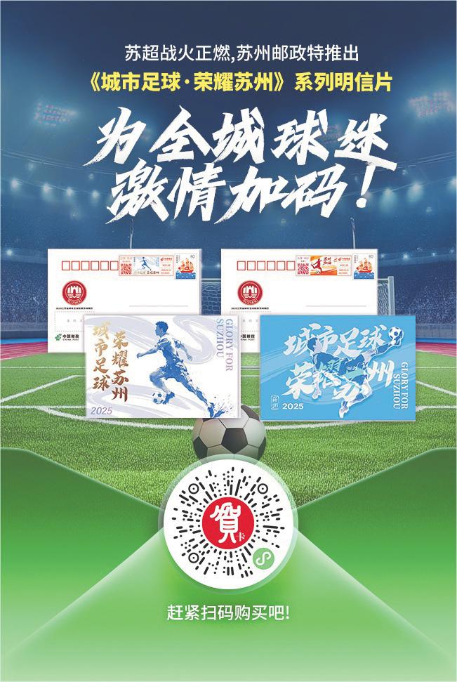 盛夏時(shí)節(jié),江蘇省城市足球聯(lián)賽(簡(jiǎn)稱“蘇超”)激戰(zhàn)正酣。作為賽事服務(wù)體系的重要組成部分,蘇州市郵政分公司憑借官方獨(dú)家授權(quán)和數(shù)字化業(yè)務(wù)創(chuàng)新,推出賽事紀(jì)念明信片寄遞與抽獎(jiǎng)互動(dòng)服務(wù),為廣大球迷及收藏愛(ài)好者帶來(lái)高品質(zhì)、便捷化、參與感強(qiáng)的賽事文化體驗(yàn)。