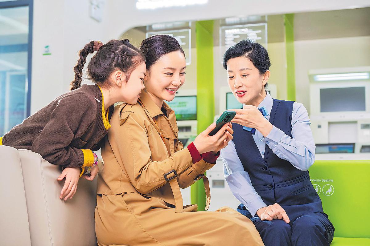 在郵儲(chǔ)銀行濟(jì)南市歷下支行營(yíng)業(yè)部的自助服務(wù)區(qū),客戶感受著智能金融帶來(lái)的高效與便捷。