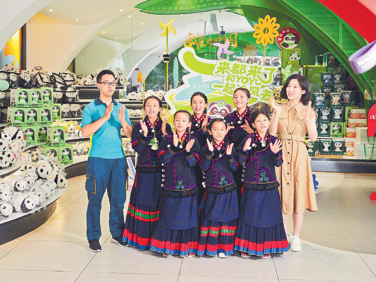 在成都世運(yùn)會(huì)開幕式上以一曲《萬千》驚艷亮相的四川涼山彝族自治州普格縣“妞妞合唱團(tuán)”,近日受邀參加《這局好玩兒》節(jié)目“沿著郵路看中國·成都站”活動(dòng)。這群大山里的孩子走進(jìn)成都熊貓郵局,開啟了一場(chǎng)融合郵政文化與熊貓主題的游學(xué)之旅。其中,最令孩子們驚嘆的是“AI郵差”互動(dòng)裝置,通過AI算法,人像與竹林、IFS熊貓雕塑等場(chǎng)景融合,生成定制明信片。“我要把成都的美景寄給山里的伙伴!”一位“妞妞”興奮地說。活動(dòng)結(jié)束前,孩子們即興獻(xiàn)唱原創(chuàng)歌曲。清澈的童聲如山泉流淌,洗去夏日燥熱。