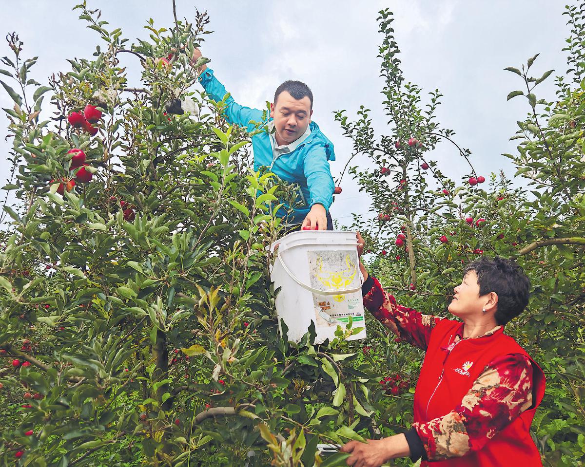 8月20日,云南省曲靖市馬龍區(qū)郵政分公司工作人員來到當(dāng)?shù)毓麍@,和果農(nóng)一起采摘蘋果,為訂單發(fā)貨做準(zhǔn)備。進(jìn)入蘋果采摘季以來,馬龍郵政通過郵樂網(wǎng)直播帶貨、線下展銷等方式幫助果農(nóng)拓展銷路,日訂單峰值突破3000件。同時(shí),郵政工作人員駐點(diǎn)合作果園,全程參與選果,還采用為寄遞蘋果量身定制的包裝材料,讓消費(fèi)者品嘗到完好無損的鮮果。